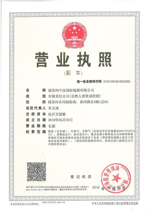 綏芬河中慶**能源有限公司營業(yè)執(zhí)照