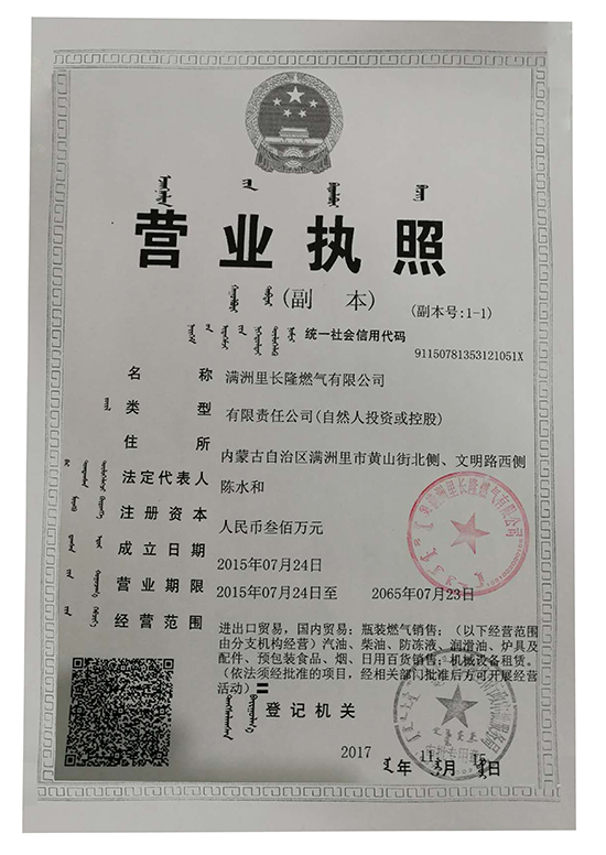 滿洲里長隆燃?xì)庥邢薰荆再Y金300萬元人民幣。公司主要從事進(jìn)出口貿(mào)易,國內(nèi)貿(mào)易;瓶裝燃?xì)怃N售;汽油、柴油、防凍液、潤滑油、爐具及配件、預(yù)包裝食品、煙、日用百貨銷售、機械設(shè)備租賃等業(yè)務(wù)。公司擁有精良的制作團(tuán)隊,本著“誠信文化、**品質(zhì)”的理念,竭誠為您提供**質(zhì)的服務(wù)。